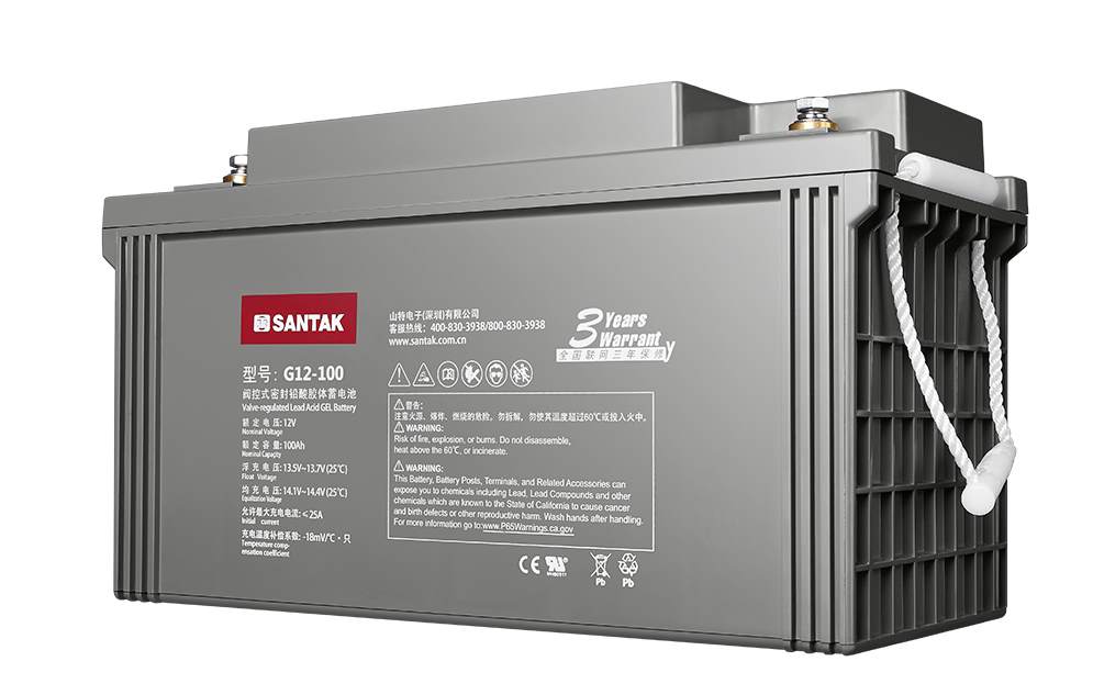 山特针对UPS行业更广泛的应用需求,特别推出了G系列12V阀控式铅酸胶体蓄电池。G系列电池产品采用触变性气相二氧化硅胶体吸收电解液,减少了气体的排出和水的损耗,从而降低容量衰减。G系列胶体蓄电池较普通蓄电池有更长的浮充使用寿命,具有更宽的温度应用范围。